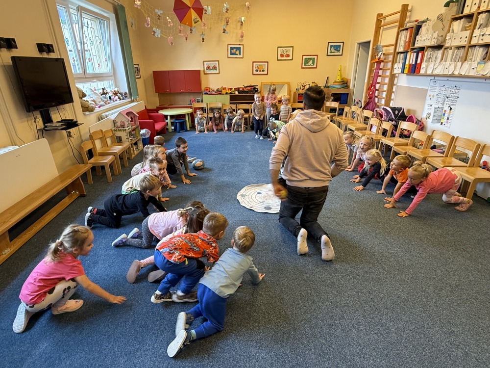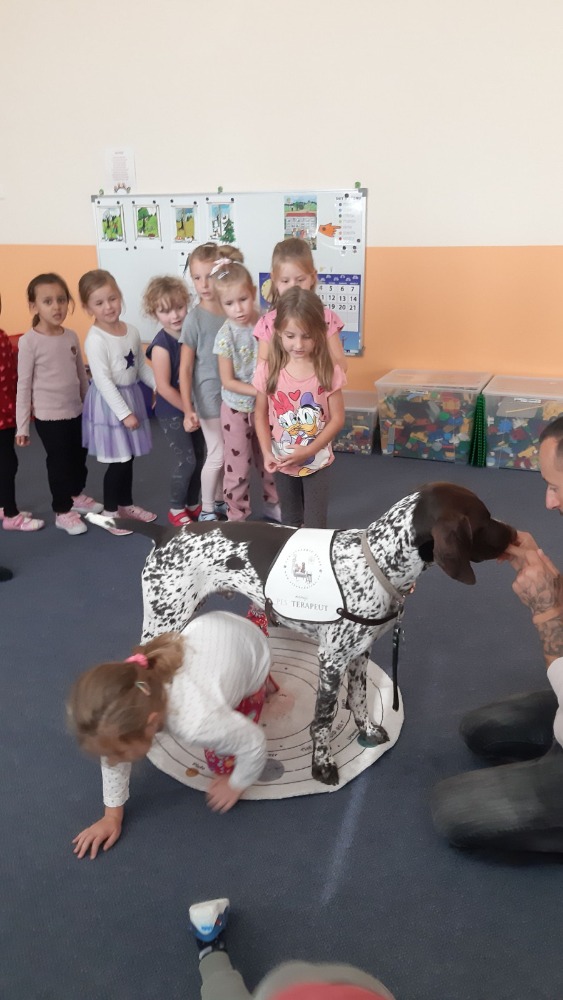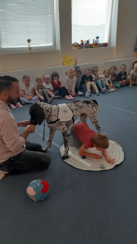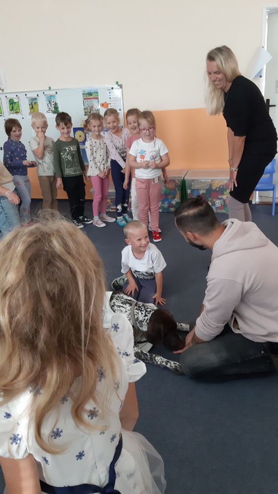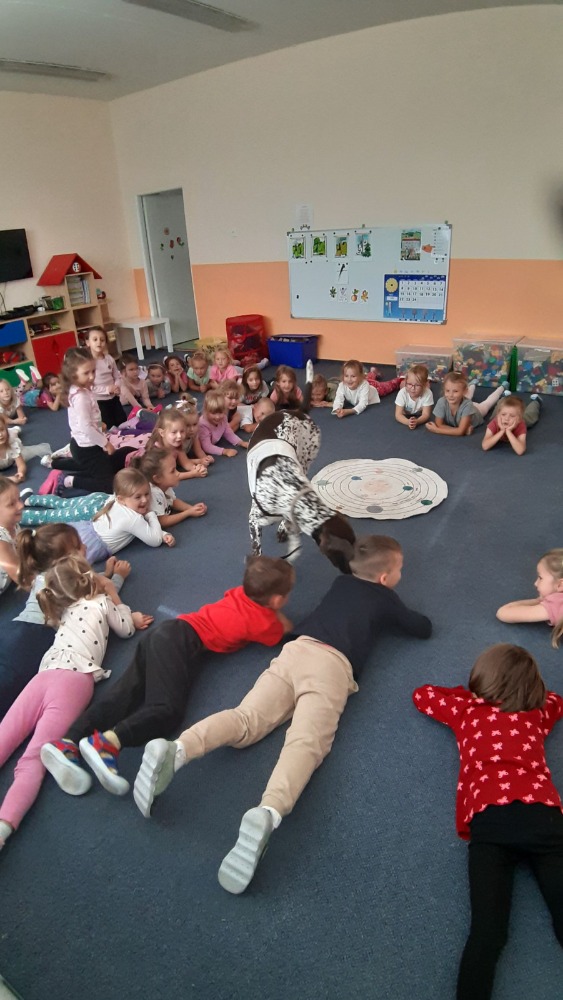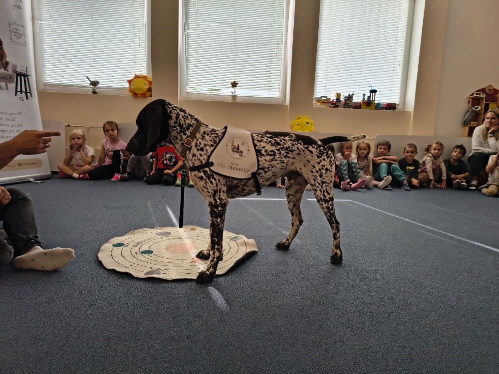 Do mateřské školy opět zavítal pan Ing. Filip Suk se svým pejskem Vesmírem. Děti se prostřednictvím canisterapie dozvěděly, jak se správně chovat ke psům a jak o ně pečovat. Měly možnost si s pejskem zacvičit, vyzkoušet si různé aktivity a společně si zahrát oblíbenou hru ,, Na zlatou bránu´´. Celé dopoledne probíhalo ve velmi příjemné atmosféře. Děti byly nadšené, získaly nové zkušenosti a zároveň zažily spoustu legrace a radosti. Panu Sukovi i pejskovi Vesmírovi moc děkujeme za krásné setkání a těšíme se na další návštěvu.