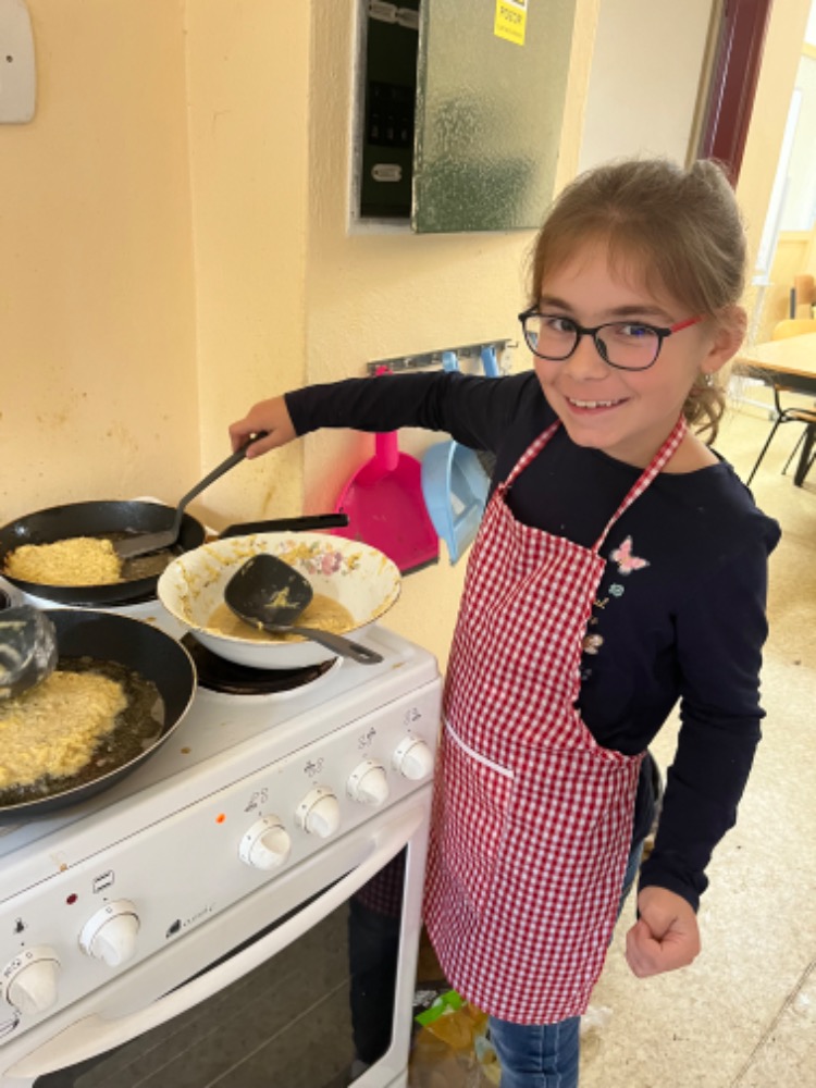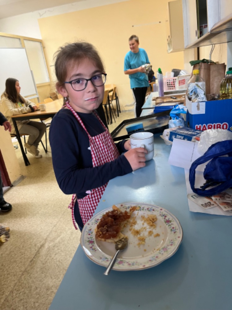 První setkání u kuchyňské linky proběhlo předposlední pondělí v říjnu. Z loňska zkušení malí kuchaři si usmažili výborné bramboráky a upekli obrácený jablečný koláč. Máme také první kulinářský neúspěch v podobě nepovedených muffinů. Inu, kdo nic nedělá, nic nezkazí. Věříme, že děti budou příště pečlivě číst recepty.