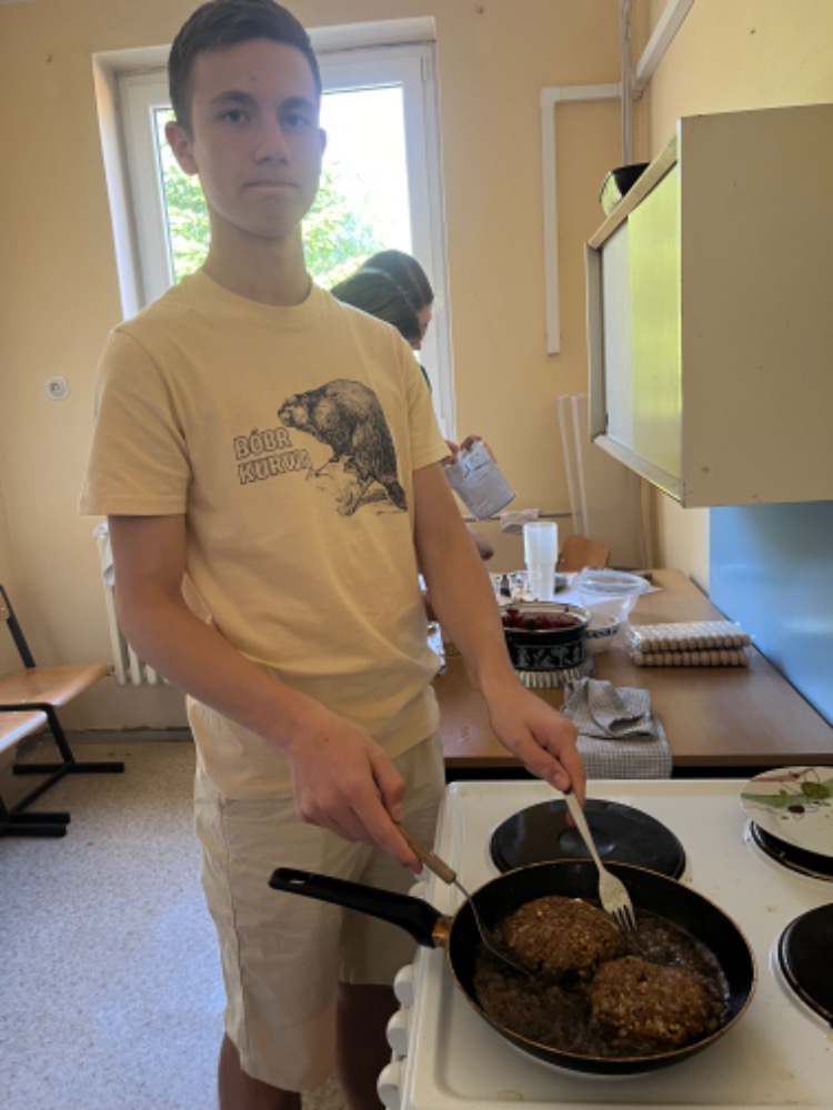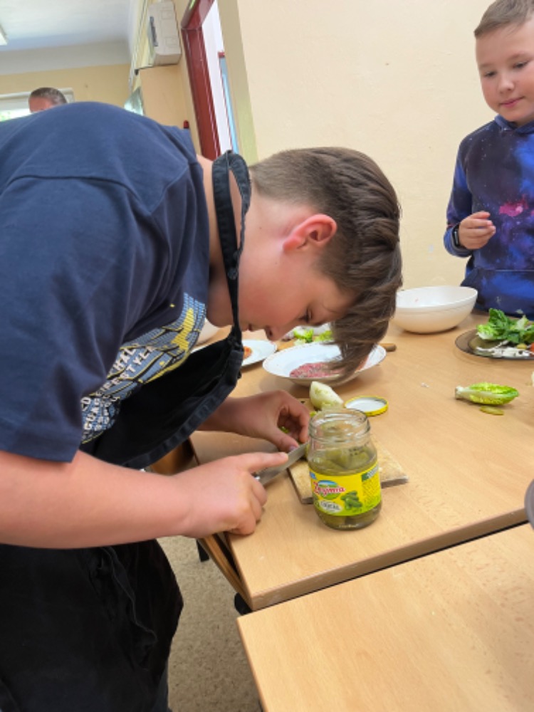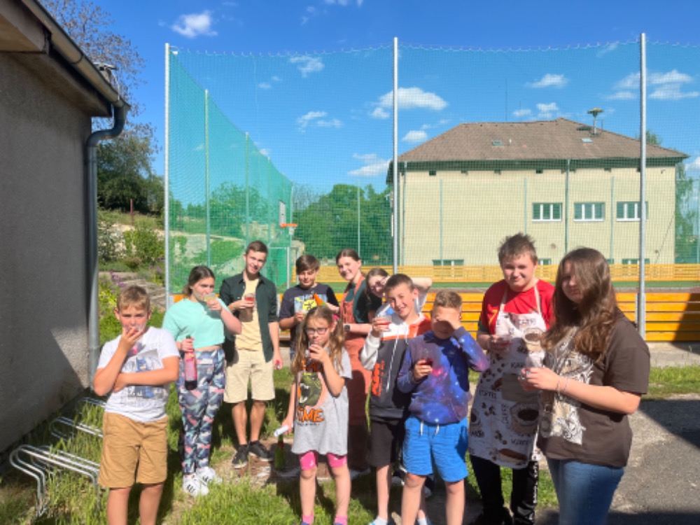 Poslední setkání kroužku vaření proběhlo v duchu rozloučení se zakládajícími členy. Menu rozlučkové party se skládalo z domácích hamburgerů v domácích houskách se zeleninovou oblohou. Jako dezert si žáci připravili ovocné pohárky se smetanou a mascarpone. Na rozloučení s deváťáky nechyběl přípitek nealkoholickým šampaňským.