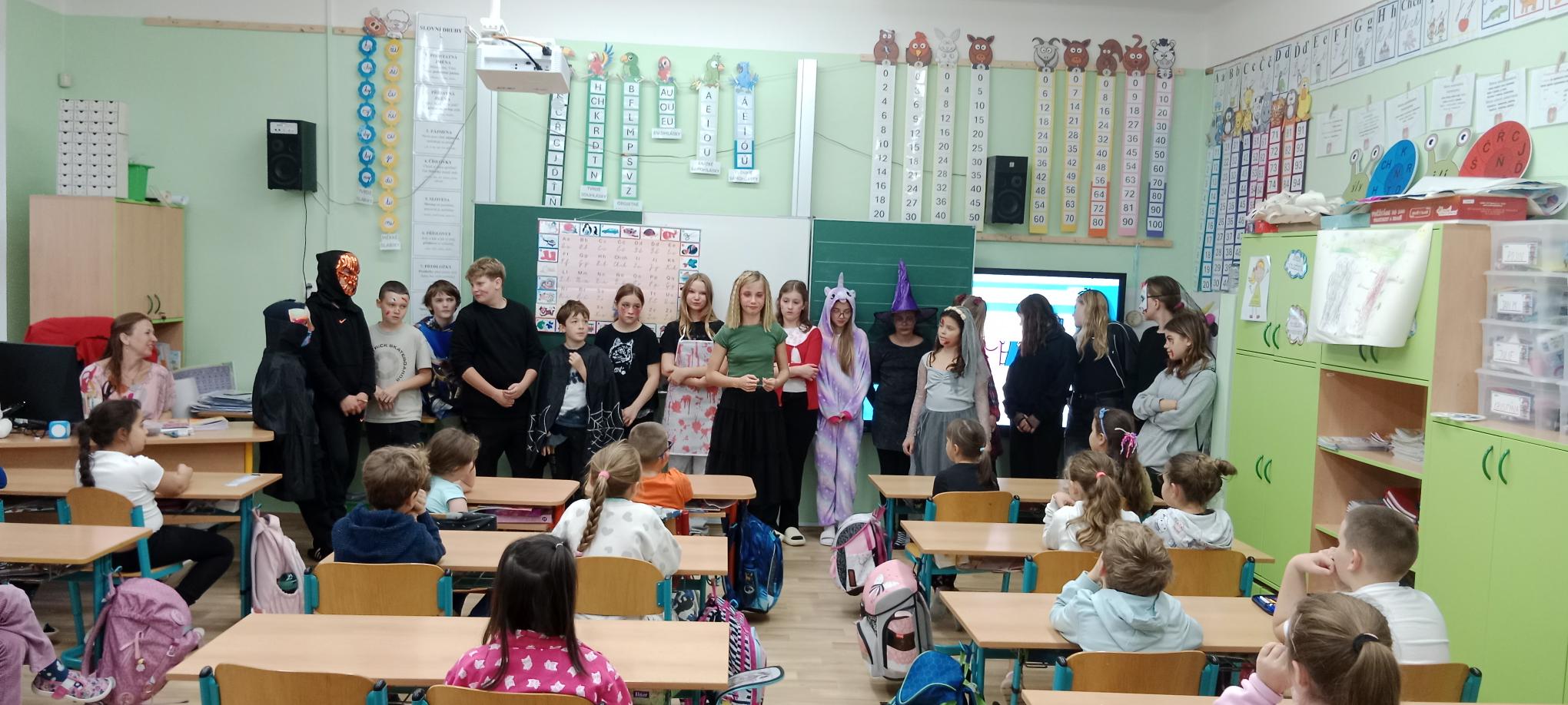 Máme za sebou první letošní patronátní setkání tříd, při kterém se naši starší žáci opět potkali se svými mladšími „svěřenci". Šesťáci si připravili krátké pásmo o tradicích Halloweenu a halloweenské občerstvení. Druháci je naopak přizvali ke dlabání dýní. Cílem setkání bylo vytvořit přátelské prostředí, ve kterém se mladší žáci budou cítit jistěji a starší se naučí převzít zodpovědnost a roli průvodců.