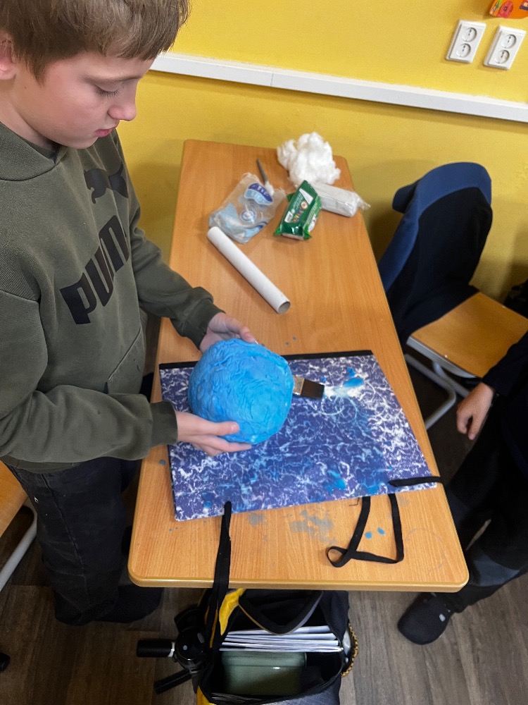 Když měli fakta pohromadě, pustili se do praktické části, kde se snažili vymodelovat planetu tak, aby odpovídala co nejvíce skutečnosti – barva, tvar, případné prstence a další typické znaky. Bylo také potřeba, aby i ve zmenšeném měřítku dodrželi poměr velikosti a nestalo se, že například Mars bude vetší než Jupiter. Ze všech modelů se nakonec složila malá, trojrozměrná Sluneční soustava, kterou si mohou žáci i učitelé prohlédnou ve třídě.