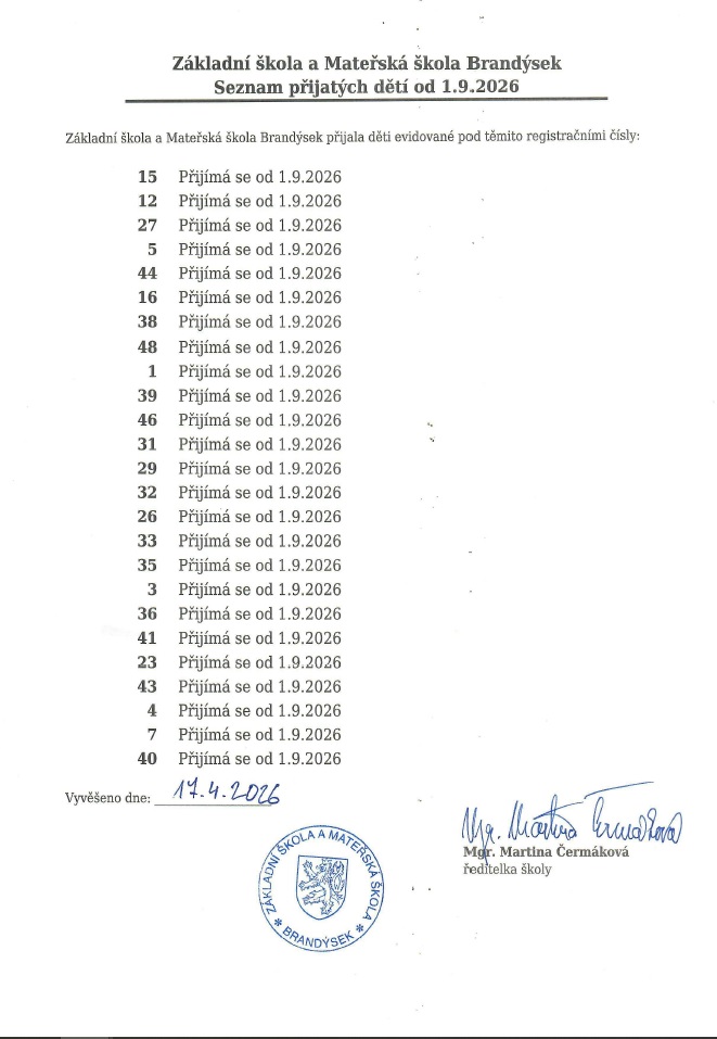 Doplňující informace k zápisu do Mateřské školy Brandýsek naleznete zde.